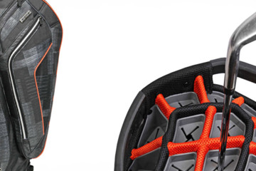 At the top of the bag, each of the 14 individual club bays is topped with a unique polymer membrane that holds each club in place so the heads don't -- or rather, can't -- bang together. At the bottom, visible through the clear, hard plastic Silencer base, are concentric circles of "flex grab teeth" that hold each club grip snugly.